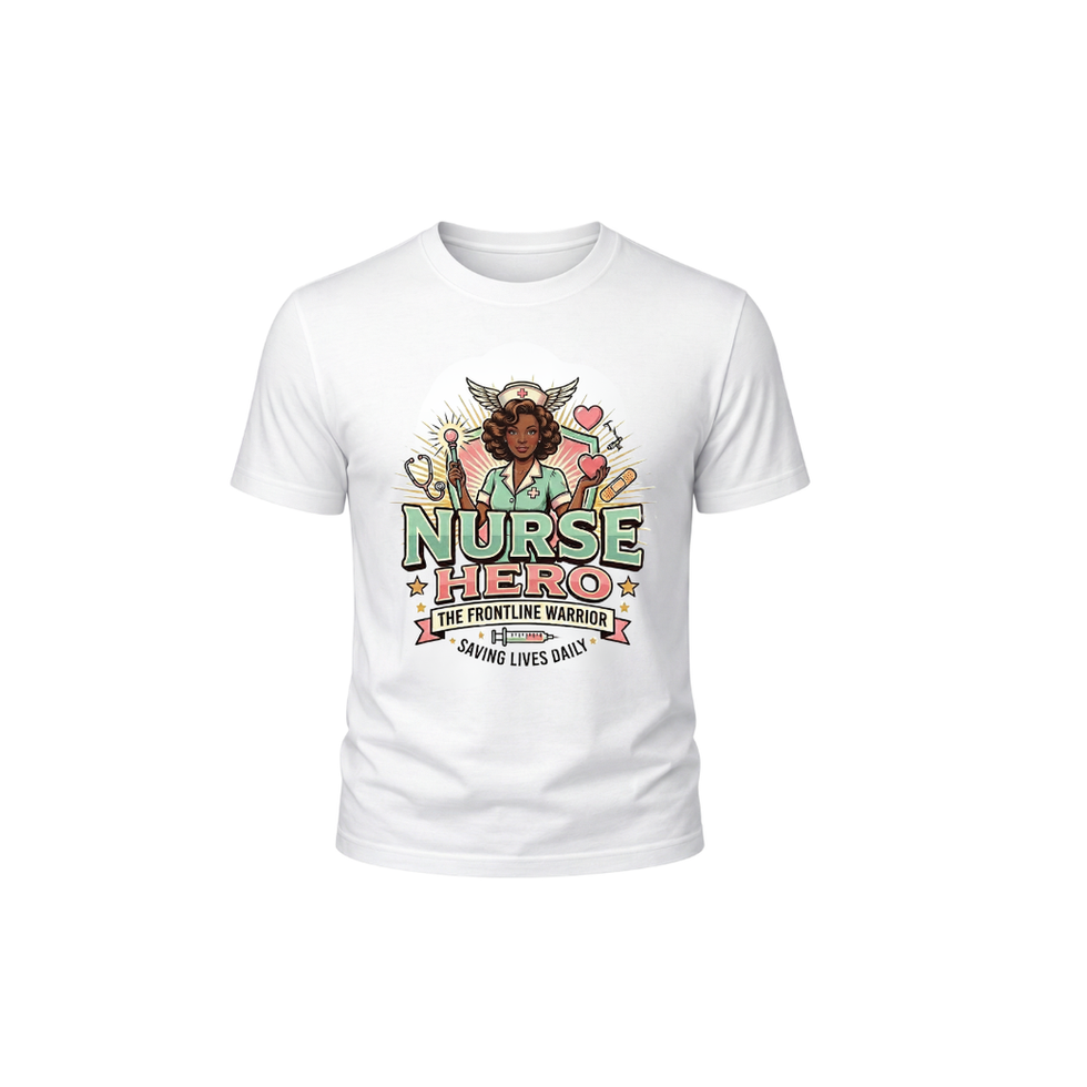 - The Statement: Features a bold "Nurse Hero" design showcasing a Front Line Warrior with majestic wings on her nursing cap, cradling a heart to represent the perfect balance of strength and care.