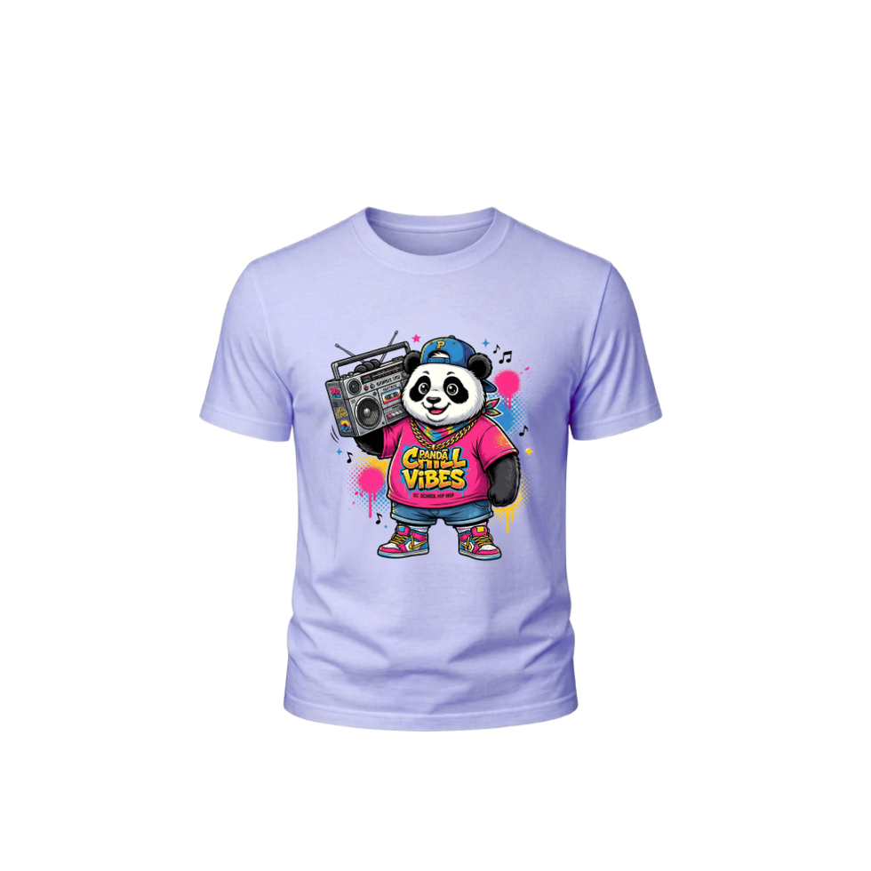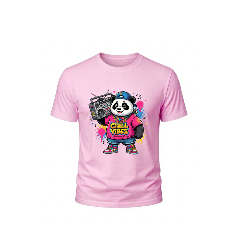 Turn up the volume and relax with our Panda Couture T-Shirt. This design features a cool panda bear holding a massive '80s style boombox on his shoulder, wearing a backward baseball cap, and rocking a hot pink shirt that says "Chill Vibes." It is designed for those who value premium style and effortless confidence.