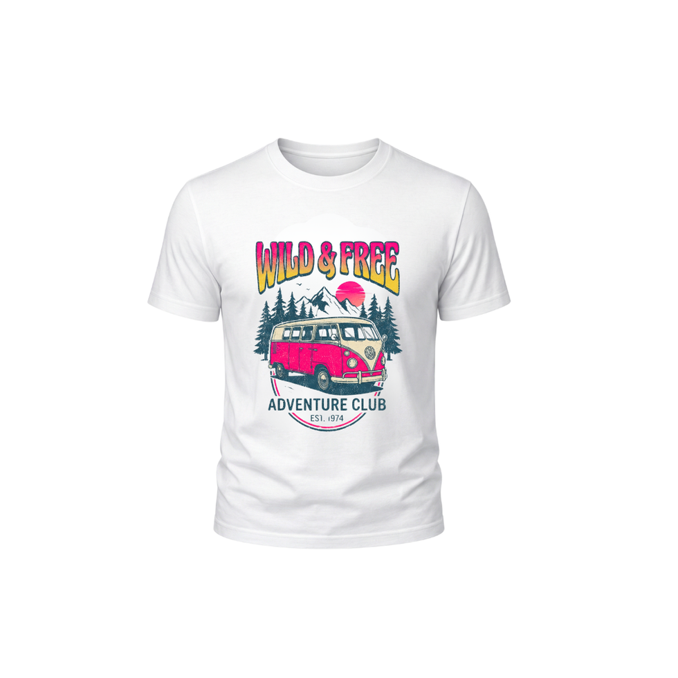 Embrace the call of the open road with our Wild & Free graphic tee. Featuring a soulful heavy-set retro font, this design captures that ultimate moment of freedom—chasing the horizon in a classic bus with nothing but miles of adventure ahead.